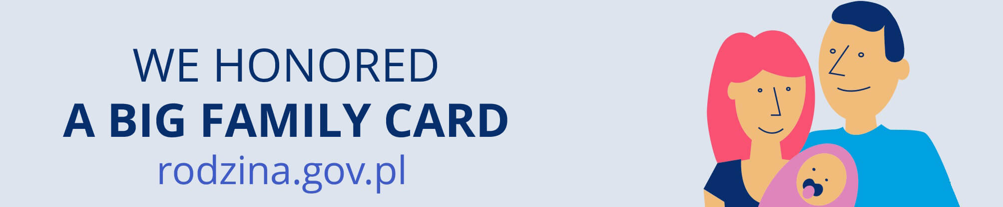 Within the “Karta Dużej Rodziny” programme (“Big Family Card”), Szkoła Języków Obcych Ambasada has prepared a special offer for families with at least 3 children. Holders of a Big Family Card receive a 5% discount for the first family member and 15% for the second and any other family member. We welcome all holders of a Big Family Card to our classes.